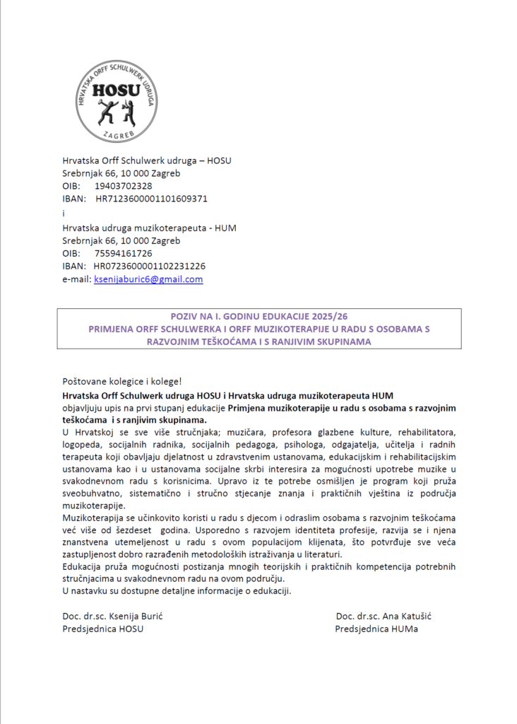 Hrvatska udruga muzikoterapeuta (HUM) posvećena je razvoju i promociji muzikoterapije u Hrvatskoj. HUM podupire razvoj obrazovnih programa, kliničke prakse i istraživanja koji doprinose utemeljenju muzikoterapije kao znanstvene discipline u Hrvatskoj.